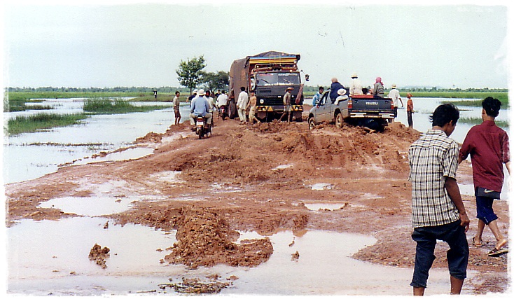 Angkor is located 6 km north of Siem Reap. And Siem Reap is 150 km to Poipet (Cambodia border with Thailand). This is picture of the road from Siem Reap to Poipet in 2000…