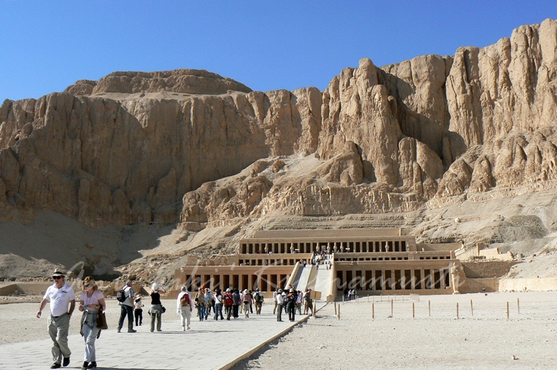 It is built into a cliff face that rises sharply above it, and is considered to be one of the ‘incomparable monuments of ancient Egypt”