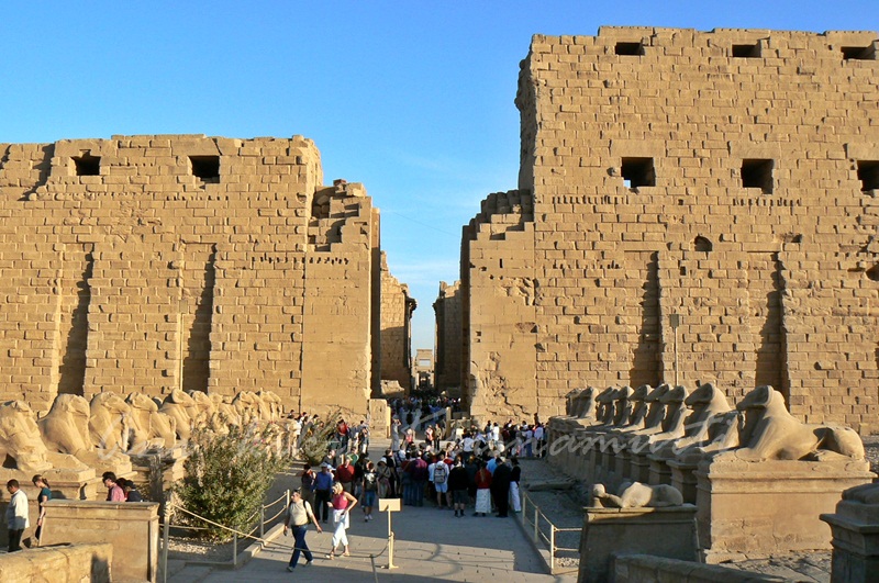 Karnak Temple comprises a vast mix of decayed temples, chapels, pylons, and other buildings. The Karnak complex gives its name to the nearby, and partly surrounded, modern village of El-Karnak, 2.5 kilometres (1.6 miles) north of Luxor