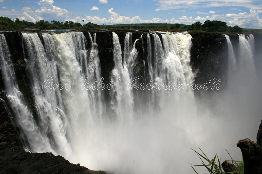 I visited Victoria Falls in December 2010 ,the end of the dry season. I entered Victoria Falls through Livingstone,Zambia . And when I arrived at the park office , the staff told me that there was no water on the Zambian side , and he let me go in and see the park without paying an entrance fee . Iwas shocked and almost died hehe … no water ! But he was so kind to tell me that on the Zimbabwe side , the water is still ok and it was a good time to see the falls up close .