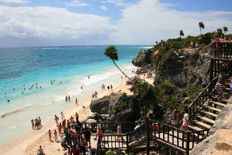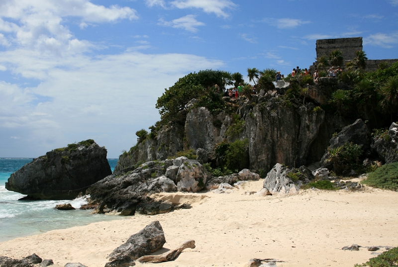 Tulum is the site of a Pre-Columbian Maya walled city serving as a major port for Coba. The ruins are situated on 12-meter (39 ft) tall cliffs, along the east coast of the Yucatan Peninsula on the Carribean Sea