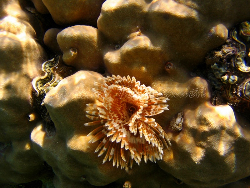 According to the Indonesian Department of Forestry the atoll has 261 species of coral, 295 species of coral fish, 244 species of mollusc