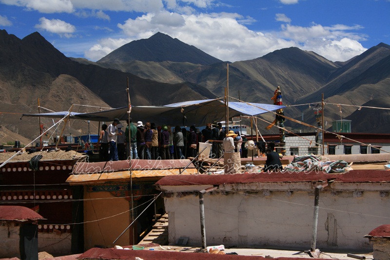 Drepung is the largest of all Tibetan monasteries and is located on the Gambo Utse mountain, five kilometers from the western suburb of Lhasa