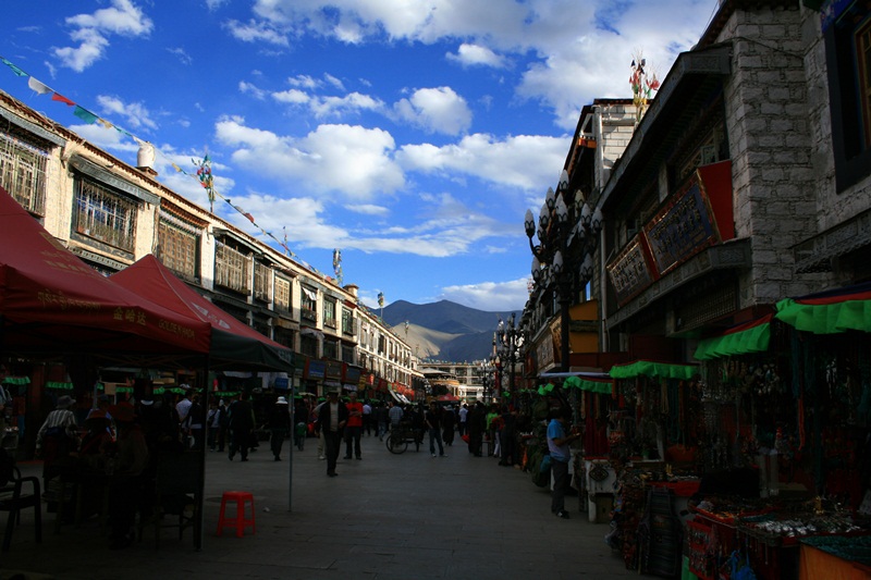 The Barkhor is an area of narrow streets and a public square in the old part of the city located around Jokhang Temple and was the most popular devotional circumabulation for pilgrims and locals. The walk was about one kilometre (0.6 miles) long and encircled the entire Jokhang