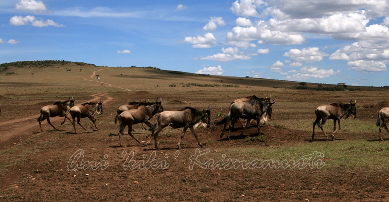 Wildebeest, topi, zebra, and Thomson’s gazelle migrate into and occupy the Mara reserve, from the Serengeti plains to the south and Loita plains in the pastoral ranches to the north-east, from July to October or later. Herds of all three species are also resident in the reserve
