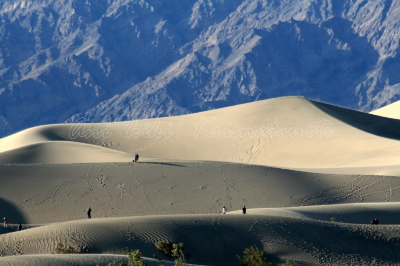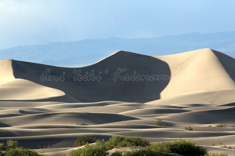 The Mesquite Flat Sand Dunes are at the northern end of the valley floor and are nearly surrounded by mountains on all sides. Due to their easy access from the road and the overall proximity of Death Valley to Hollywood, these dunes have been used to film sand dune scenes for several movies including films in the Star Wars series.