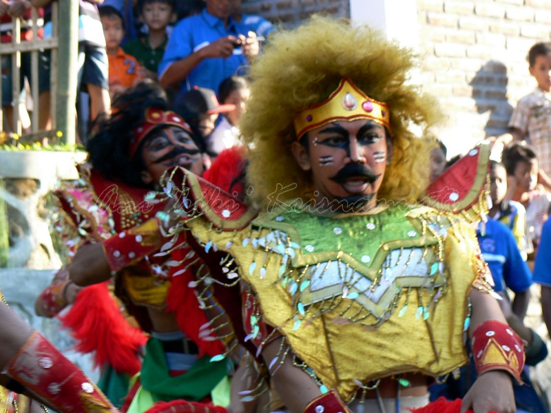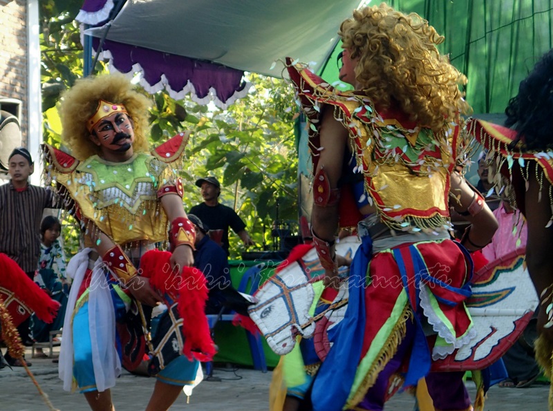 Kuda Lumping (Javanese: Jaran Kepang or Jathilan), English: Flat Horse) is a traditional Javanese dance depicting a group of horsemen. Dancers “ride” horses made from woven bamboo and decorated with colorful paints and cloth.