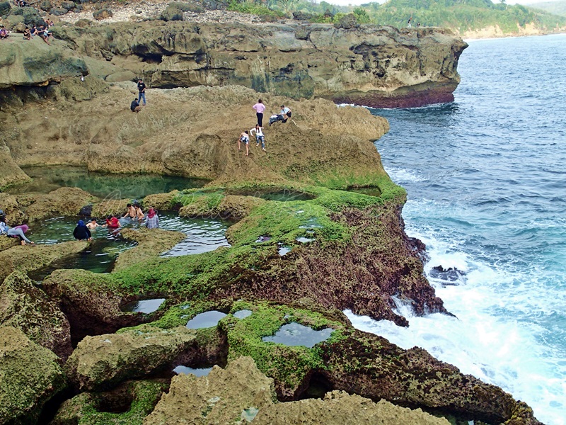 Kedung tumpang is a new tourist destination. You have to walk and go up and down a small hill to reach the natural pools in the rock by the sea