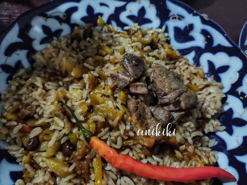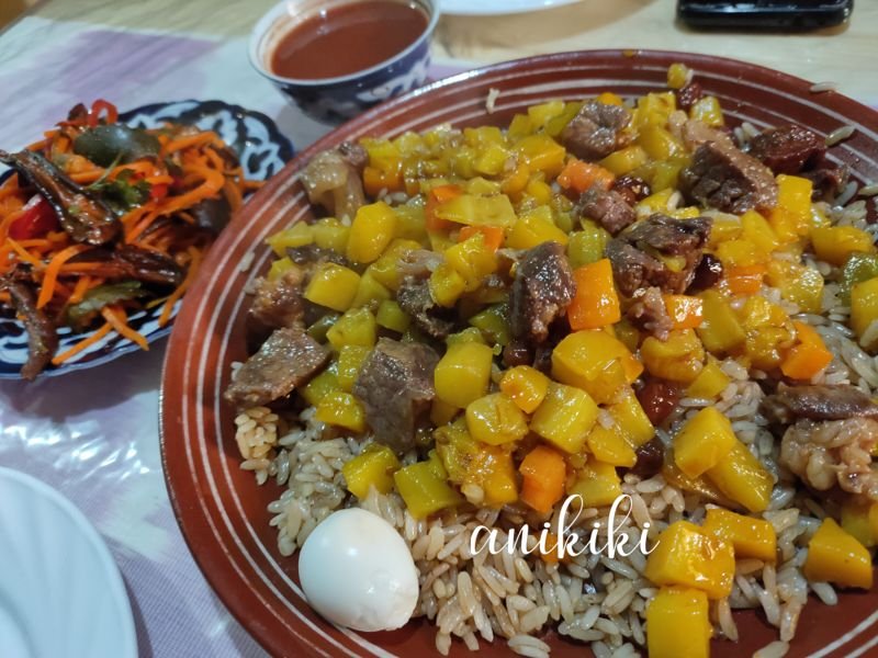 Yang paling sering disebut adalah plov, yaitu semacam nasi goreng yang dimasak dalam wajan besaaar dan di sana disebut ‘kazan’.