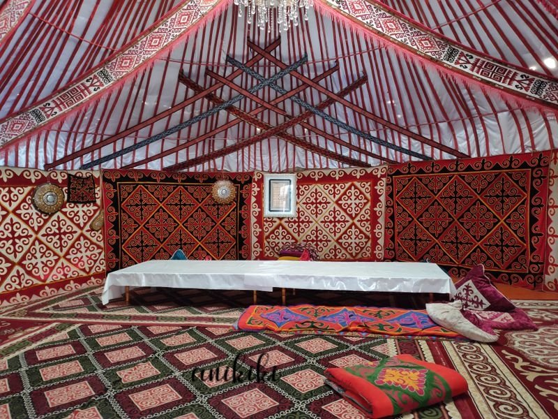 Dekorasi tradisional di dalam sebuah yurt terutama didasarkan pada pola. Pola-pola ini umumnya tidak sesuai selera, tetapi berasal dari ornamen sakral dengan simbolisme tertentu. Pola geometris berulang juga banyak digunakan