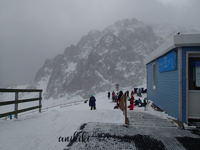 Kami tiba di Shymbulak siang yang semestinya lumayan hangat tapi ternyata adeem hihii. Kami memang tidak siap untuk bersalju salju, pakaian seadanya, bekal makan seadanya.