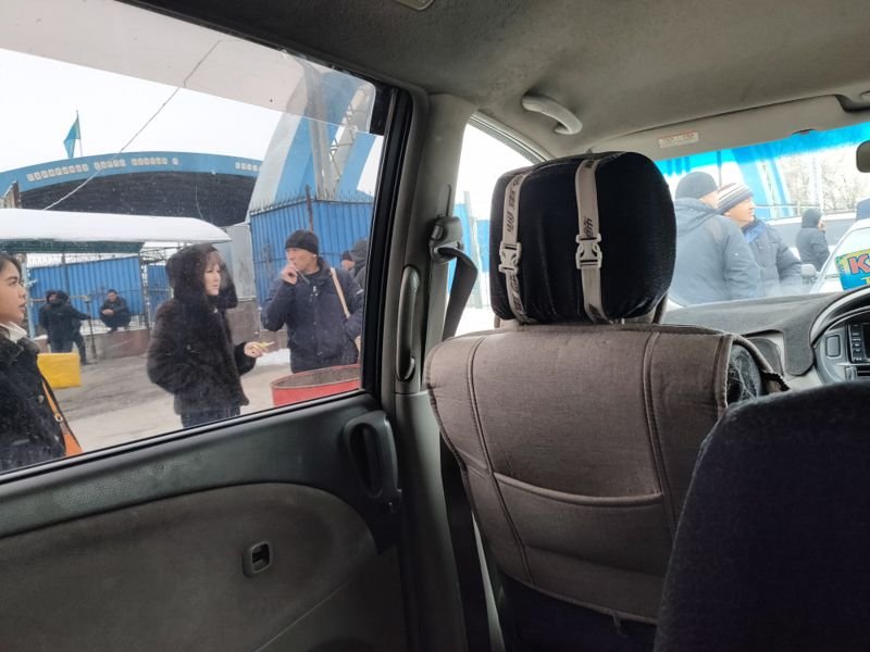 Kembali dari Kyrgyzstan, tiba di sisi Kazakhstan, kami tidak lagi naik marshrutka, melainkan shared taxi kapasitas 7 orang dengan biaya 2500 tenge/orang.