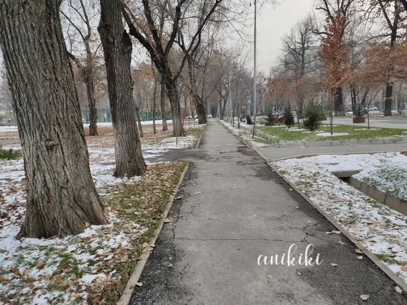 Tiba di Sayran bus station, kami naik Yandex ke penginapan di Kurmangazy street. Ternyata Almaty sudah makin dingin dan bersalju.