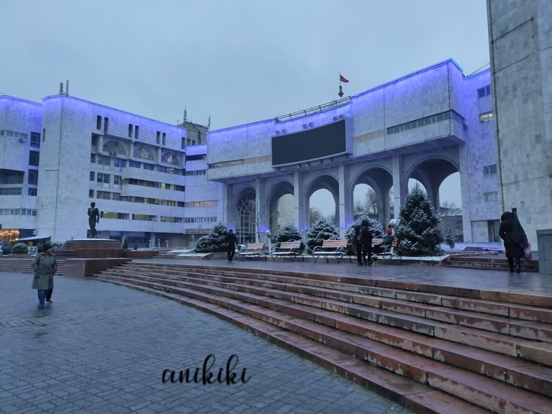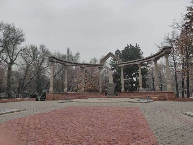 Di sebelah selatan square adalah Chingiz Almatov Memorial