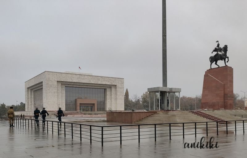 Dari osh Bazaar kami ke Ala Too Square, dan kebetulan tepat pergantian penjaga