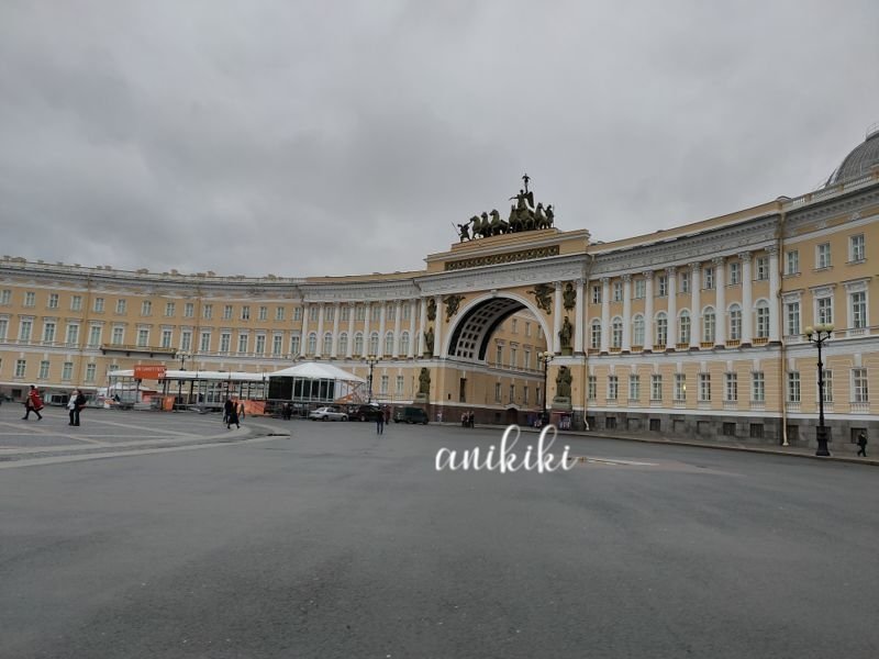 Sisi barat, terbuka menuju Lapangan Admiralty, sehingga menjadikan Palace square bagian penting dari rangkaian megah alun-alun St Petersburg.