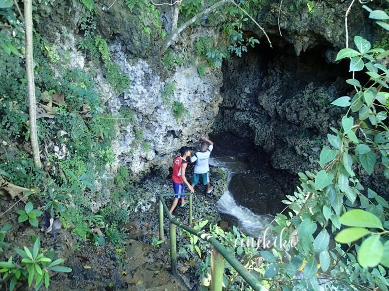 Gua yang dimasuki dengan menuruni anak tangga dan mengikuti aliran sungai