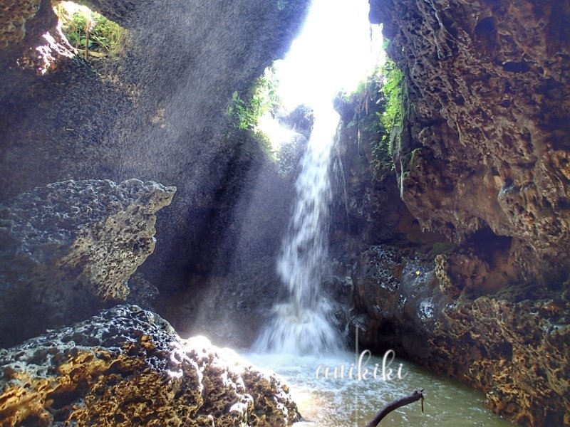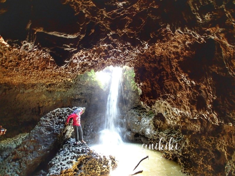 Begitu masuk ke dalam gua, terlihat lubang besar dan air terjun