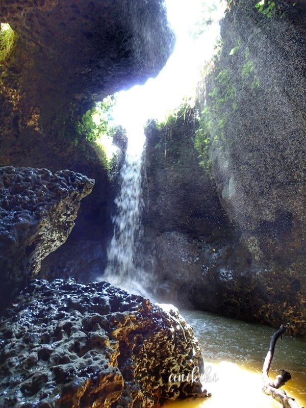 Mirip dengan gua jomblang di Jogja, tapi ini ada air terjunnya