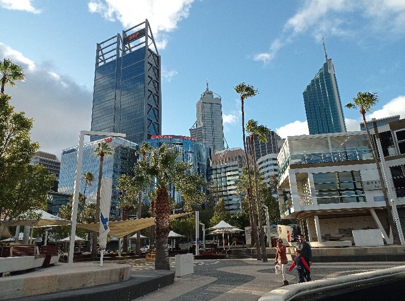 The central business district of Perth is bounded by the Swan River to the south and east, with Kings Park on the western end and the railway reserve as the northern border.