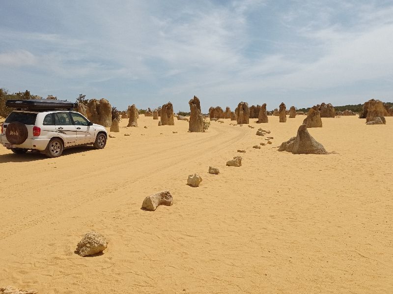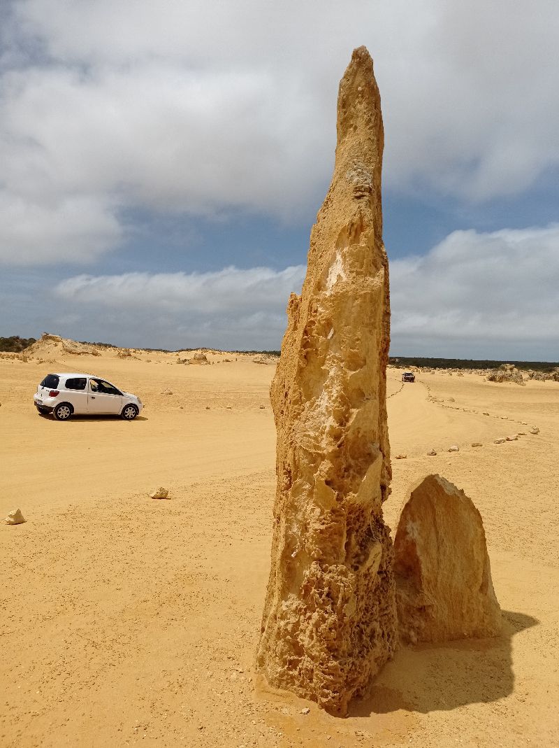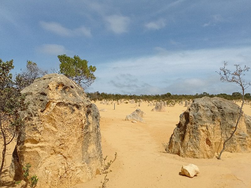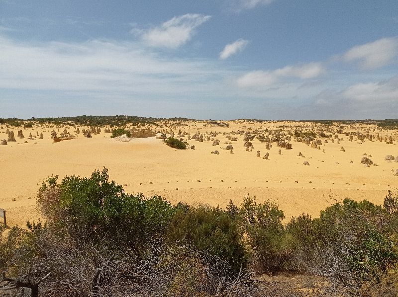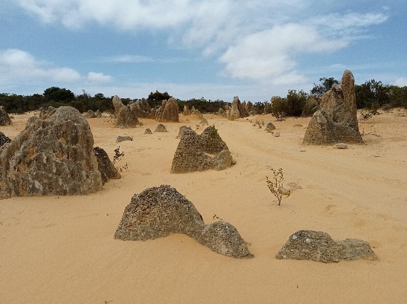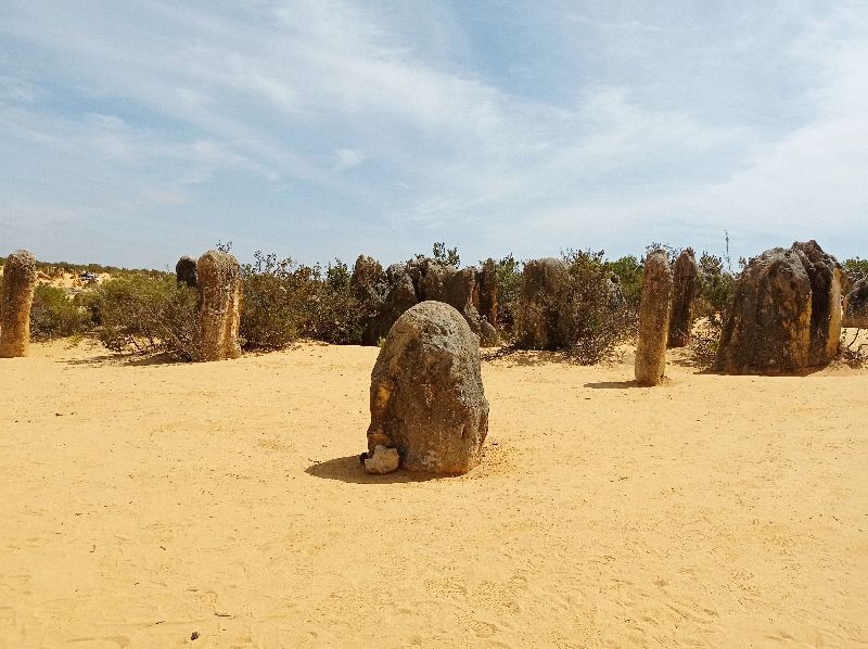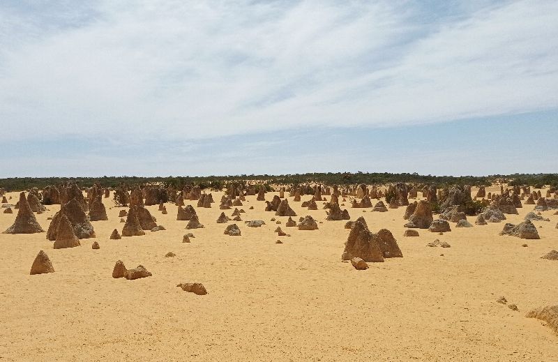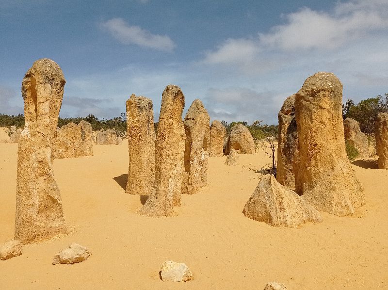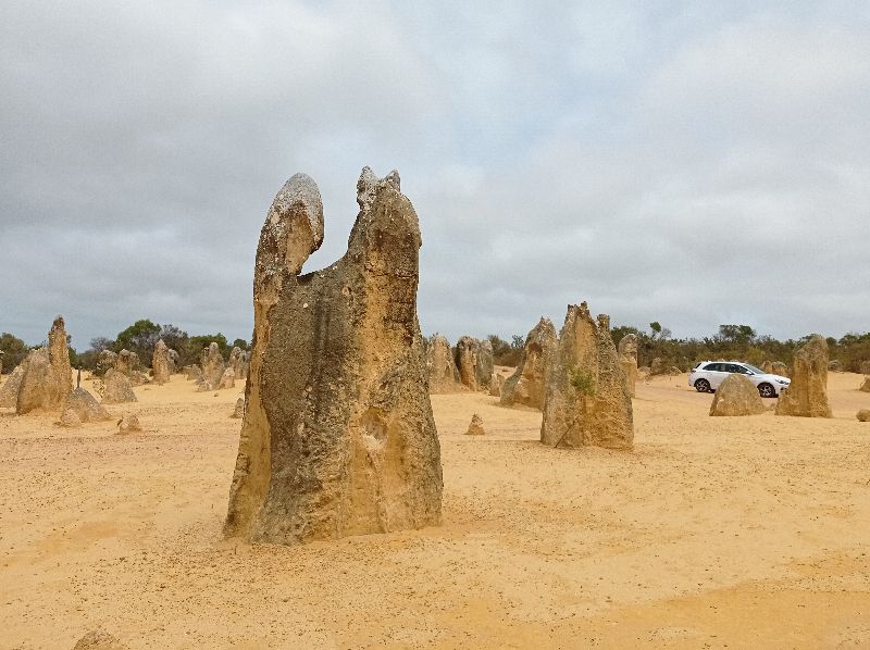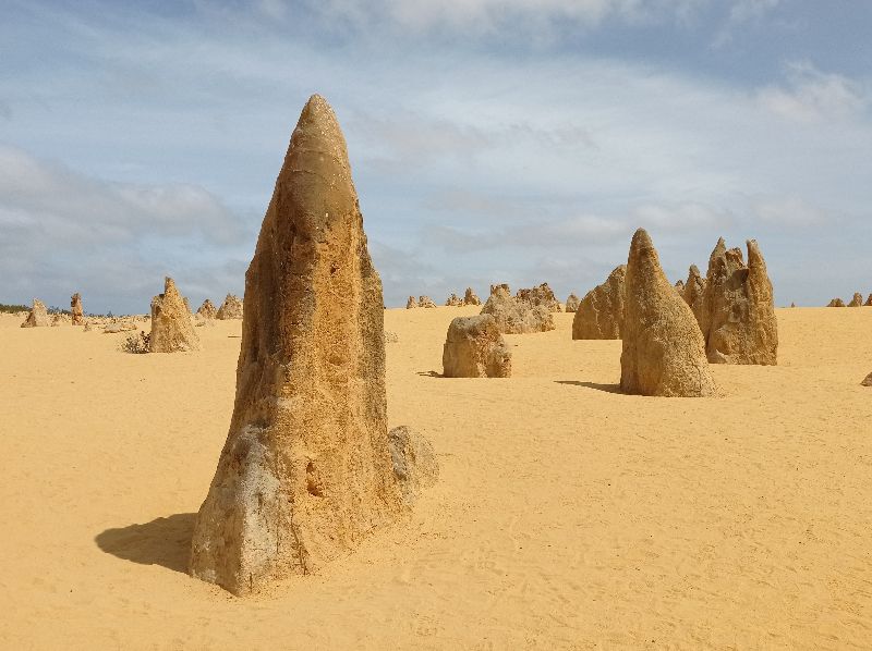 The area contains thousands of weathered limestone pillars. Some of the tallest pinnacles reach heights of up to 3.5 metres (11 ft) above the yellow sand base.