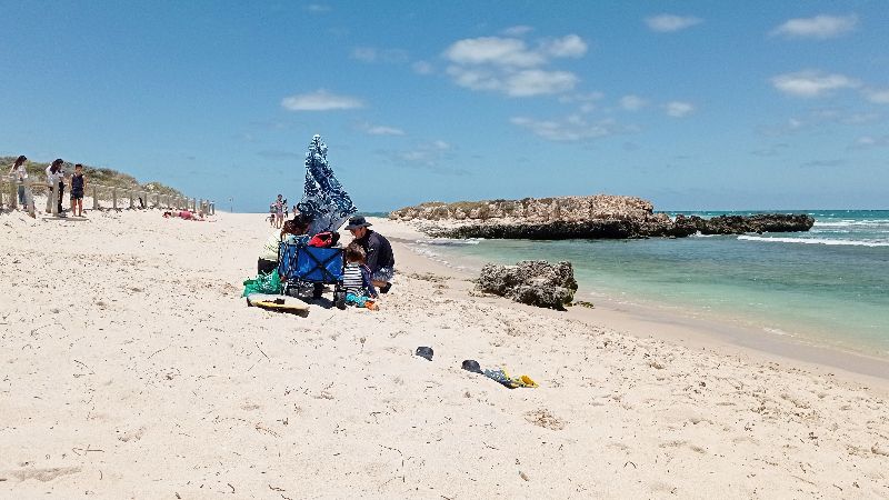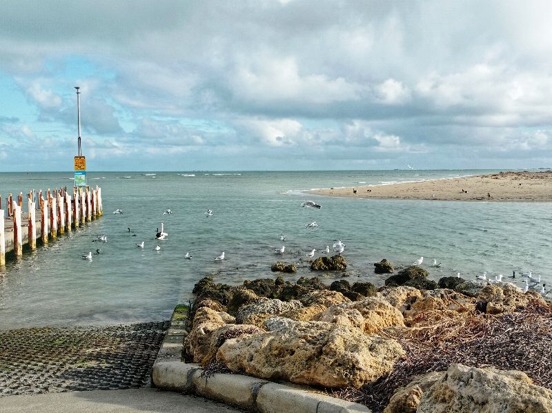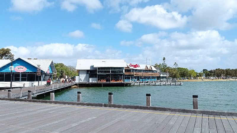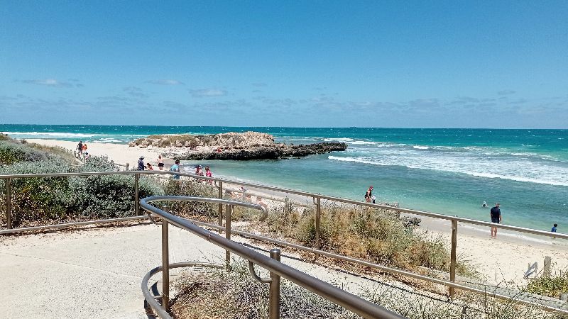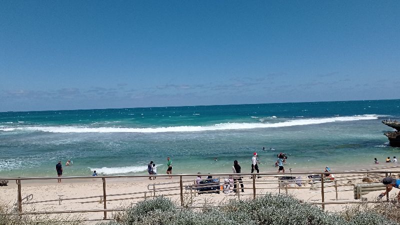 Rockingham Beach is a popular, safe, family-friendly beach and foreshore area located south of Perth, Western Australia, known for its calm, shallow waters, white sand, and abundant marine life, including dolphins, which can often be seen from boats or kayaks.