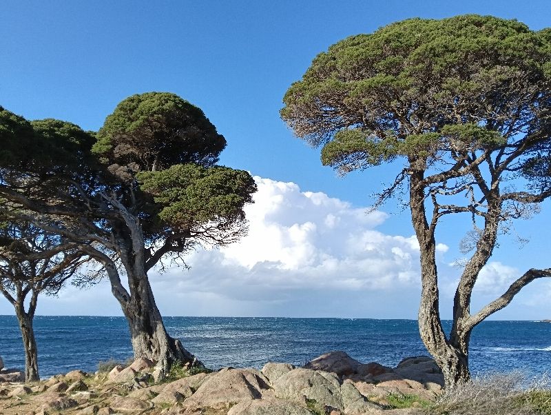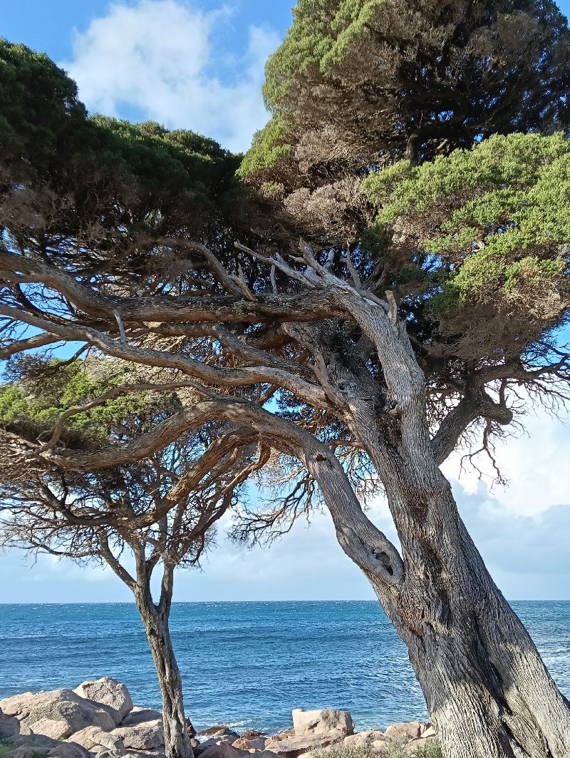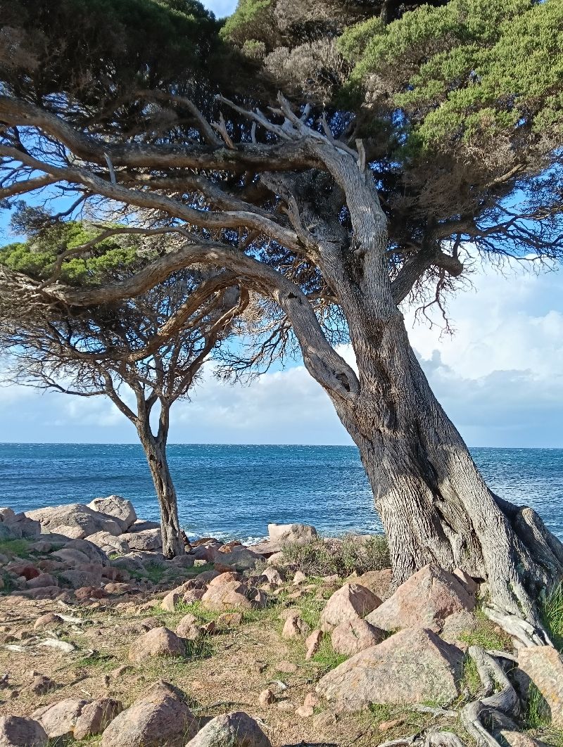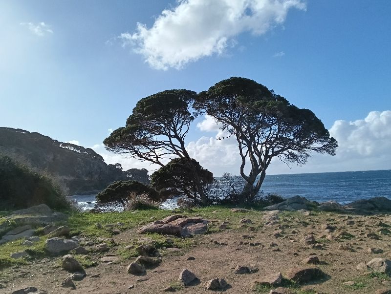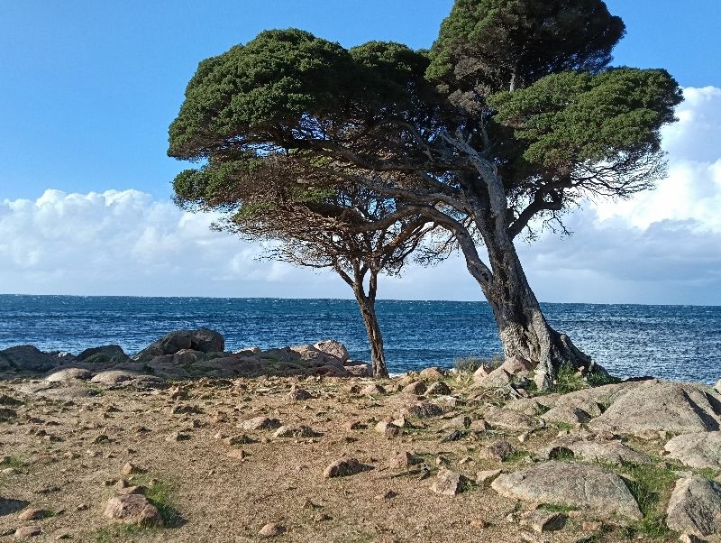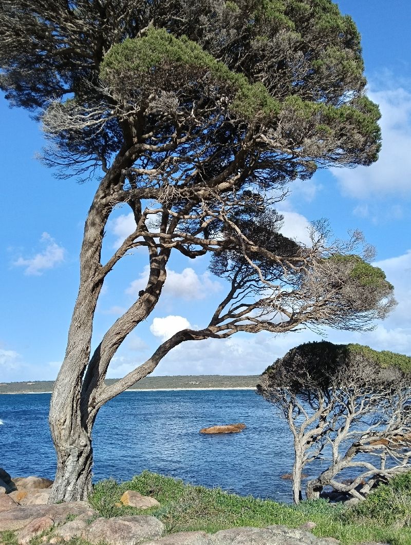 The placement and shape of these trees are due to centuries of prevailing winds, making them a signature feature of the bay’s natural beauty.